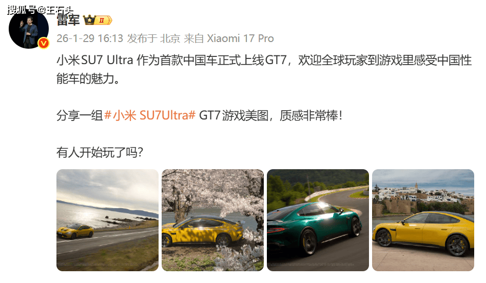 当全球顶级赛车游戏《GT赛车》迎来一位来自东方的“新面孔”时,玩家社区瞬间沸腾了——小米SU7 Ultra,这台印有“XIAOMI”标识的电动性能车,以首款中国量产车的身份正式入驻游戏,成为虚拟赛道上最受瞩目的存在。海外论坛上,玩家们争相分享试驾体验,有人惊叹于其精准的操控反馈,有人则被充满未来感的设计语言所吸引,这场跨越虚拟与现实的汽车文化碰撞,正在改写全球玩家对中国制造的认知。