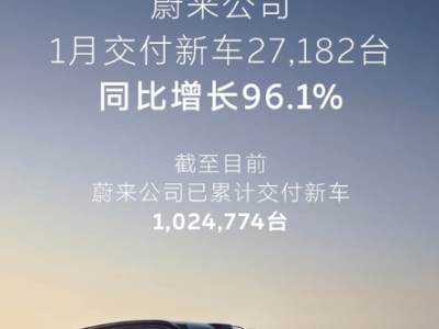 蔚来汽车近日公布了最新交付数据,展现出强劲的市场表现。数据显示,今年1月,蔚来公司新车交付量达到27,182台,与去年同期相比大幅增长96.1%,这一成绩标志着其市场拓展取得显著成效。