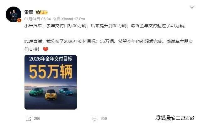 在SU7 Ultra销量持续低迷的背景下,小米汽车董事长雷军于2026年初抛出雄心勃勃的55万辆年度销量目标。这一数字较2025年实际销量增长数倍,意味着小米需要在现有产品矩阵基础上,推出更具市场竞争力的新车型。行业分析师指出,要实现该目标,小米不仅需要稳固现有中低端市场,更要在高端领域建立持续的技术优势和品牌认知。