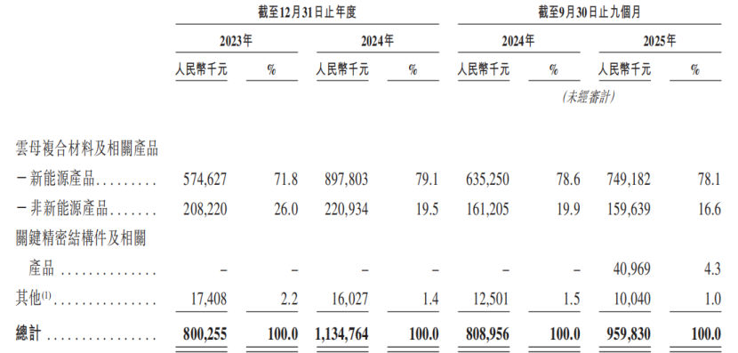 云母产品作为浙江荣泰的核心业务,以其稳定的电绝缘性和较高的阻燃耐热性而著称。这些产品能够在高温环境下保持可靠性能,广泛应用于新能源、电缆、家电等多个领域。其中,新能源领域包括新能源汽车(NEV)、动力电池和储能电池等,是云母产品的主要应用市场。