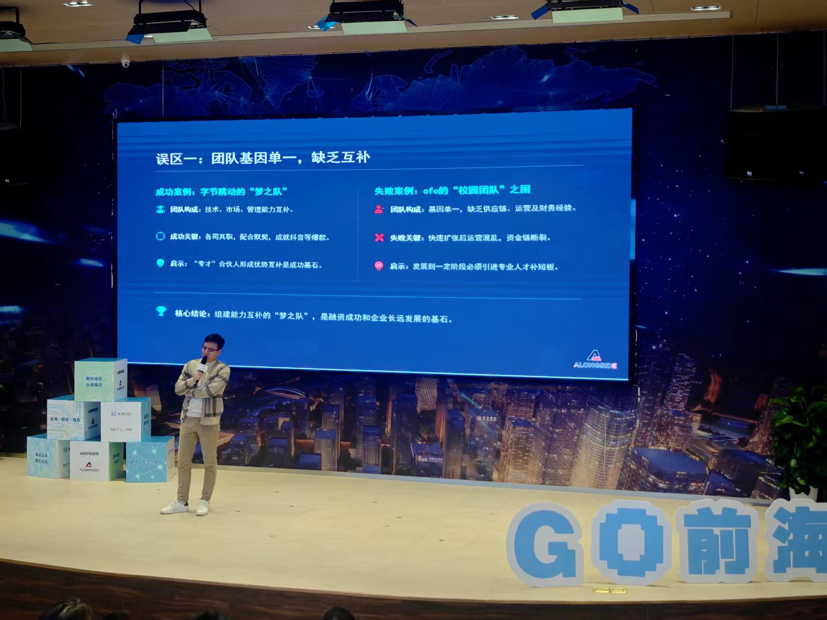 图3:在“资本破局”主题演讲中,长识投资创始合伙人蔡怡博(Eric Cai)通过对比字节“梦之队”与ofo“校园团队”的正反案例,破解“团队基因单一”的迷思,生动论证“能力互补是融资与长远发展的基石”这一核心结论。