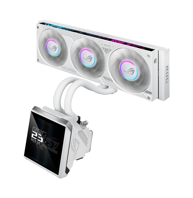 在外观设计方面,ROG STRIX飞龙4代360一体式水冷散热器充分考虑了玩家不同的桌搭需求,采用了极简美观的设计理念,并提供黑、白双配色供玩家选择。这种简约时尚的设计风格能够轻松融入不同风格的主机和桌搭环境,无论是追求科技感的现代风格,还是喜欢复古风格的桌面布置,都能与之相得益彰。此外,水冷头还配备了5.08英寸全彩LCD屏幕,这一屏幕不仅可以实时显示硬件信息,让玩家随时了解电脑的运行状态,还支持自定义内容。玩家可以根据自己的喜好设置个性化的图案、文字等,提升整机的可玩性和美观度。再加上400mm的管长设计,在机箱中布线空间更加灵活,整体观感也更加干净时尚,简直是颜值党必备单品。