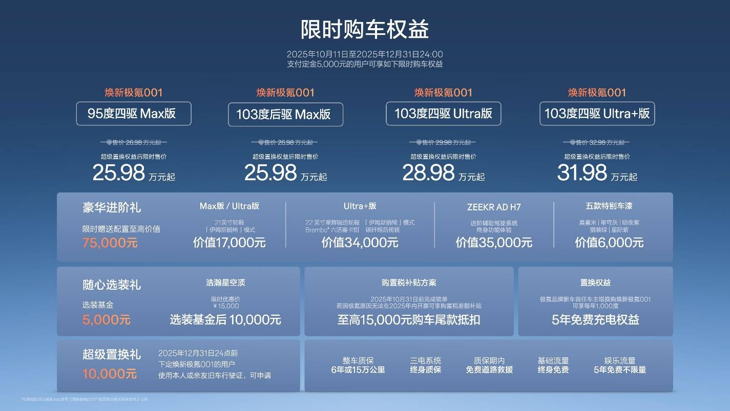 智能与豪华体验方面,焕新极氪001同样表现出色。新车标配的千里浩瀚H7辅助驾驶方案装机量已超25万台,基于NVIDIA DRIVE Thor - U芯片打造的NZP全域领航辅助功能强大。值得一提的是,极氪在2025年11月启动了老车主该系统的众筹升级计划,承担全部研发费用与超一半硬件成本,充分体现了其用户型企业的理念。车内座舱以“星空音乐厅”为核心,全球首发的浩瀚星空顶、4680W剧院级音响以及带20点按摩的伊姆斯躺椅,为乘客打造了沉浸式的出行体验,成为车主们津津乐道的亮点。