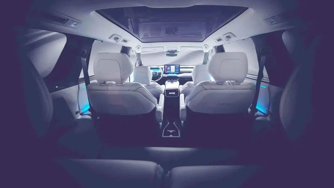 从曝光的内饰预告图来看,新车采用2+2+2六座布局,精准瞄准多孩家庭出行需求。驾驶舱延续丰田实用主义设计哲学,悬浮式中控屏与全液晶仪表构成科技核心,中央岛台保留实体按键的操作逻辑,在触控化浪潮中坚持盲操便利性。第二排配备独立触控屏的中央扶手,配合与汉兰达高度相似的空调出风口布局,暗示其车身尺寸与功能定位的传承关系。这种设计策略既保持品牌基因,又通过电动化平台实现空间优化,第三排腿部空间较传统燃油车提升15%。