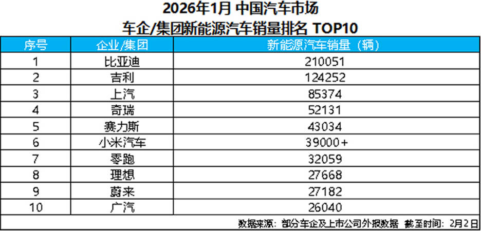 新年首月,中国新能源汽车市场的竞争格局已初现端倪。头部车企之间的销量差距在1月榜单中进一步扩大,比亚迪凭借超21万辆的新能源汽车销量,再次稳坐行业头把交椅。这一成绩不仅巩固了其在中国新能源市场的领先地位,更在主要车企中拉开了显著差距。