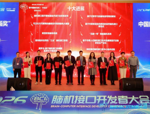 2026年2月3日,全国首届脑机接口开发者大会在天津圆满落幕,本次大会由脑机接口产业联盟、脑机交互与人机共融海河实验室及天津大学联合主办,以“技术开源、生态共建、产业落地”为核心主题,汇聚国内外500余名脑机接口领域专家学者、企业从业者及行业从业者,搭建起高效的技术交流、资源共享与产业协同平台,同步开展新成果发布、项目路演等特色活动,助力脑机接口技术从实验室走向商业化落地,赋能产业高质量发展。当晚,大会最受关注的重磅环节——脑机接口华瑙奖2025十大进展评定结果正式揭晓,经过评奖委员会函评、会评等多轮严格评审,十大具有行业标杆性的脑机接口领域进展成功出炉,全面覆盖科技突破、产业转化、场景应用三大赛道,充分彰显了我国脑机接口领域的突破性发展成效与强劲创新活力。
