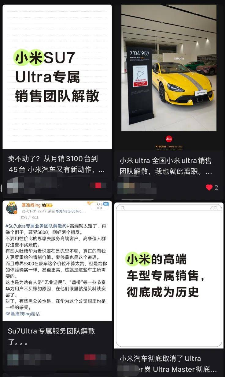 销售体系的调整随之而来。部分团队成员转岗支援SU7等主力车型,部分选择离职,销售权限逐步下放至常规渠道。这种转变背后,是小米汽车即将迎来的产品大年:SU7改款预计2026年4月上市,YU9车型已完成极寒测试,产品线扩张迫使企业从"仪式感"转向"效率优先"的运营模式。