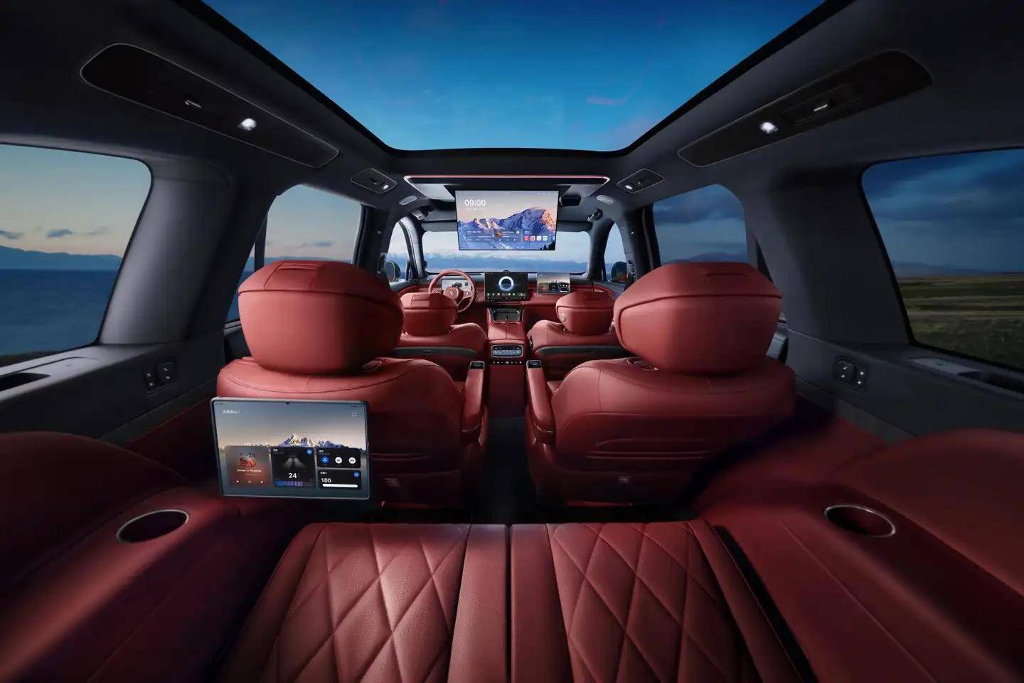 智能座舱的升级紧扣高端商务人群的核心需求。新增的二排扶手屏与语音控制座椅横滑功能,让后排乘客可优雅调节座椅位置;座椅联动逻辑与零重力模式的优化,使座舱空间在商务洽谈与休憩模式间快速切换;升级后的迎宾照明系统则通过仪式感设计提升出行品质。这些功能并非简单堆砌,而是基于用户真实场景的精准赋能,将座舱打造为“移动会客厅2.0”,满足高端用户对效率与舒适性的双重期待。