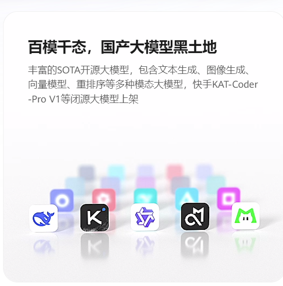 在控制台的模型广场,可一键选择你想用的模型,如DeepSeek、Qwen、GLM等主流开源与闭源大模型,无需下载SDK或编写复杂代码,点击推理调用或在线体验即可实时发起对话。