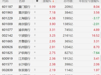 A股银行股涨幅进一步扩大:厦门银行涨停,重庆银行涨超7%