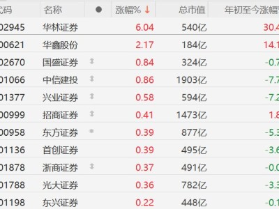 A股券商股拉升,华林证券涨6%