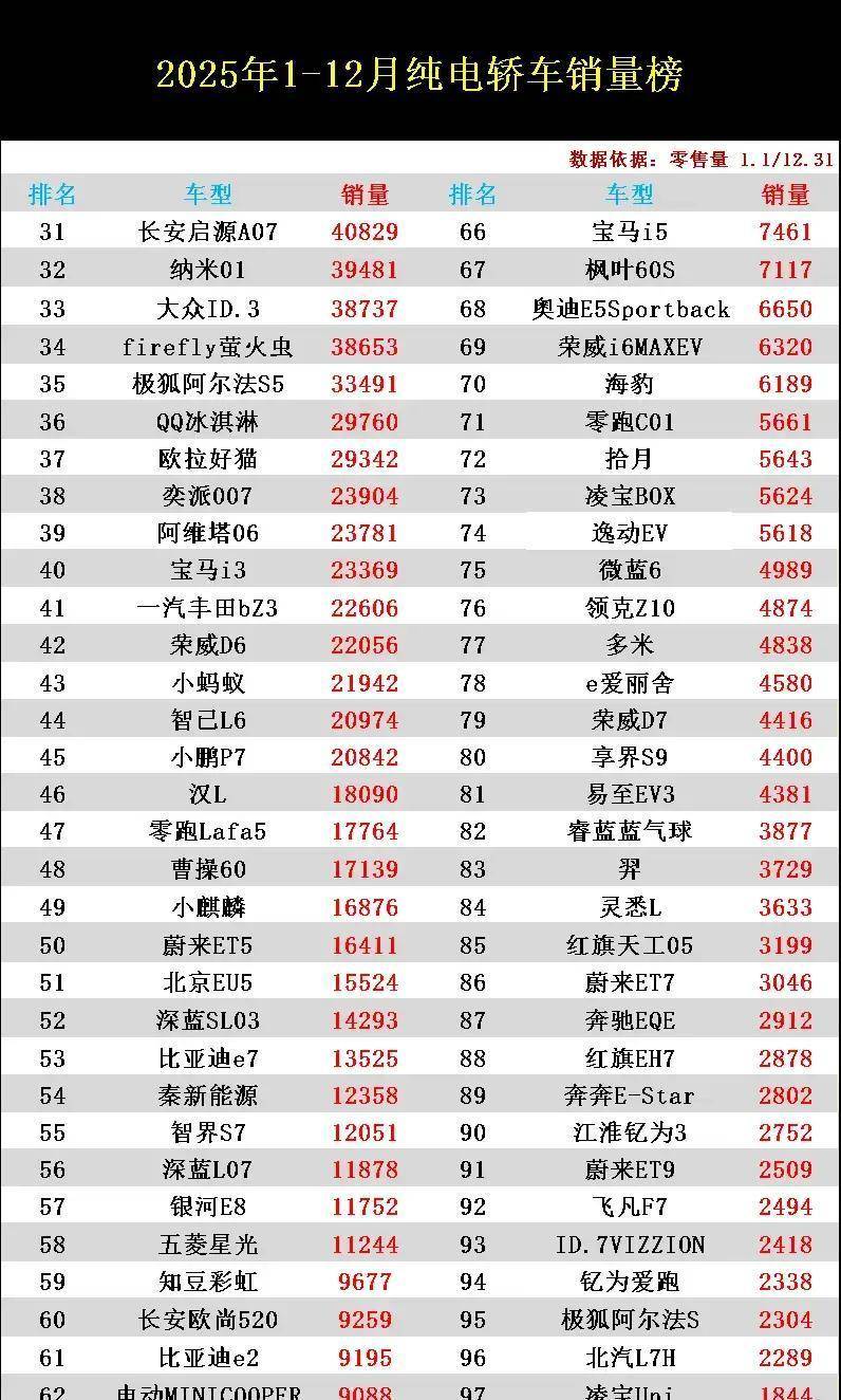 市场格局的快速更迭令人瞩目。去年销量冠军秦PLUS今年被吉利星愿取代,折射出行业竞争的激烈程度。车企纷纷在续航里程、智能配置和价格策略上展开博弈,蔚来ET5、汉、日产N7等新晋车型以11万至15万辆的年销量形成第二梯队。但价格战也带来副作用,部分品牌因过度降价导致产品质量下滑,老用户忠诚度明显降低,多款车型逐渐淡出主流视野。