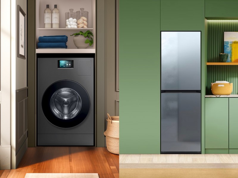 左为三星AI神 黑钻热泵洗烘旗舰,右为三星AI神 黑钻衣物护理机