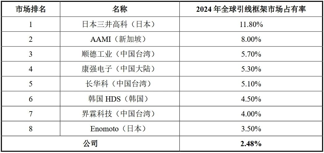 在技术实力方面,永志半导体屡获殊荣,被认定为国家级专精特新“小巨人”企业、江苏省先进级智能工厂及江苏省智能制造车间。市场数据显示,2024年公司在全球引线框架市场的占有率为2.48%,在中国大陆市场的占有率为6.57%;在全球分立器件引线框架(不含LED框架)市场的占有率则达到11.52%,显示出较强的市场竞争力。