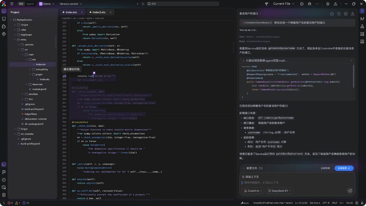 探索模式:更强调人机协同与创造力。你可以用自然语言描述需求目标,让华为云码道为你规划并分解项目任务,生成项目级代码、进行Agent知识增强、代码续写,并在多轮对话中持续迭代,把“想法”快速推进到“可运行”。
