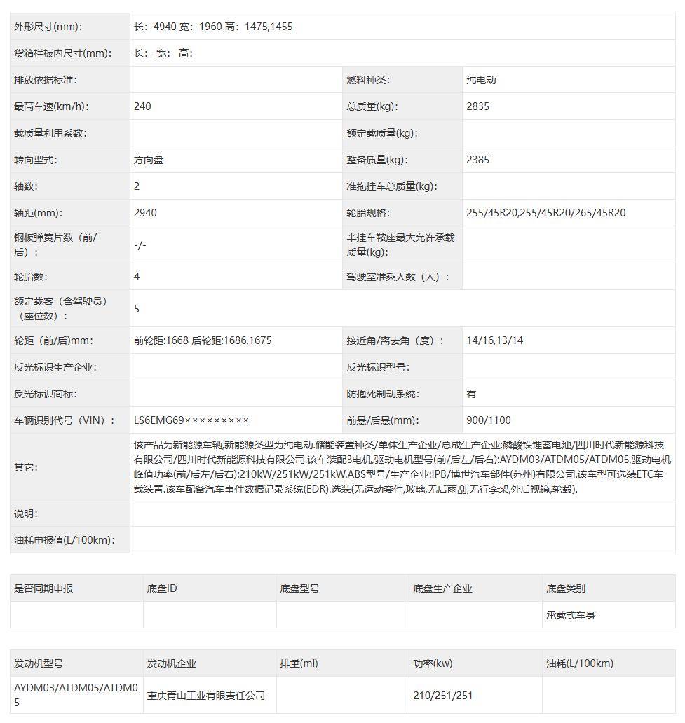 根据申报信息,阿维塔06T提供纯电动与插电式增程混动双版本选择。车身尺寸方面,长宽高分别为4940mm、1960mm,高度则提供1455mm、1475mm及1495mm三种规格,轴距达2940mm,为车内空间布局提供了灵活基础。动力系统上,纯电版配备两种电机组合:225kW双电机(后左/后右)版本,以及210kW前电机+251kW双后电机(前/后左/后右)的三电机版本;增程版则采用185kW双电机(后左/后右)配置,满足不同用户对动力性能的需求。