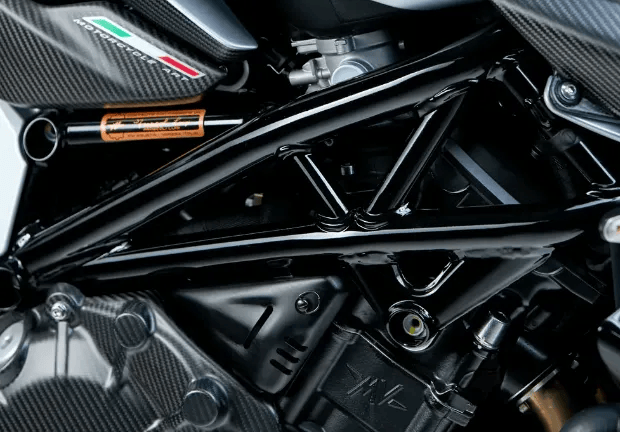 车身结构采用高强度钢管车架与后单摇臂设计,既保证了整体刚性,又有效减轻了车体重量。悬挂系统由知名品牌Ohlins提供,配备电子辅助控制的减震装置,可根据路况实时调整阻尼参数。制动系统则选用Brembo的Stylema卡钳,搭配高性能刹车盘,为驾驶者提供充足的制动力与精准的操控反馈。车辆标配弯道ABS与快速换挡系统,进一步提升了安全性与驾驶便利性。