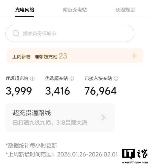 在自建超充网络持续扩张的同时,理想汽车通过开放合作模式构建了更广泛的充电生态。截至目前,该品牌已接入3416座优选超充站,这些站点均具备峰值功率不低于200千瓦的充电能力,且通过严格筛选确保充电稳定性。理想汽车还整合了76964座第三方快充站资源,形成覆盖全国的多元化充电解决方案。特别值得关注的是,其打造的"九纵九横"高速超充网络已覆盖G1京哈高速、G2京沪高速、G20青银高速、G30连霍高速等18条国家级交通动脉,这些线路承载着全国60%以上的长途出行需求。