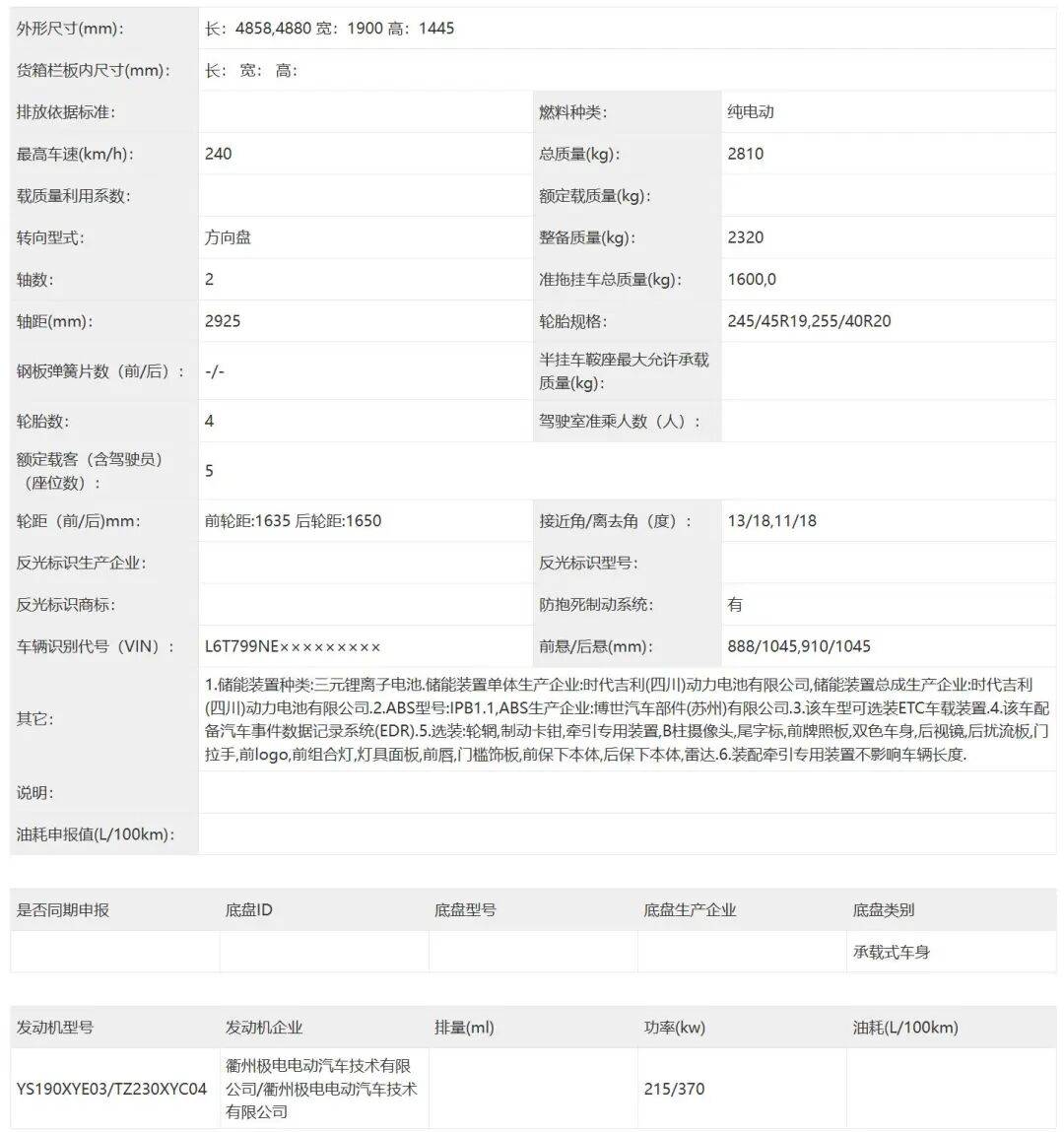 尾部设计凸显运动特质,轿车版配备小鸭尾扰流板,GT版则搭载更大尺寸扰流板。贯穿式熏黑尾灯组与立体化下包围形成层次感,扁平化雾灯嵌入两侧区域。尺寸数据方面,两车型长宽高统一为4858(4880)/1900/1450mm,轴距达2925mm,定位中型轿车市场。轮胎规格提供245/45 R19与255/40 R20两种选择。