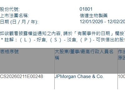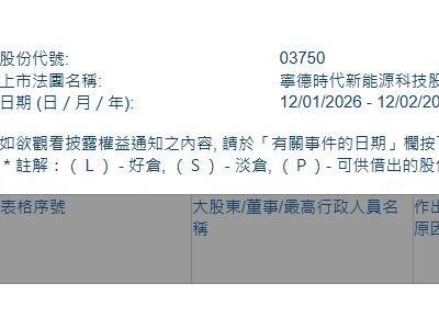 格隆汇2月12日丨根据联交所最新权益披露资料显示,2026年2月10日,LFG投资控股(03938.HK)遭执行董事邓振辉在场内以每股均价2.90港元减持25万股,涉资约72.5万港元。