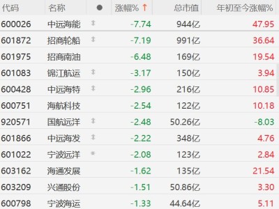 A股航运股集体下跌,中远海能、招商轮船跌超7%