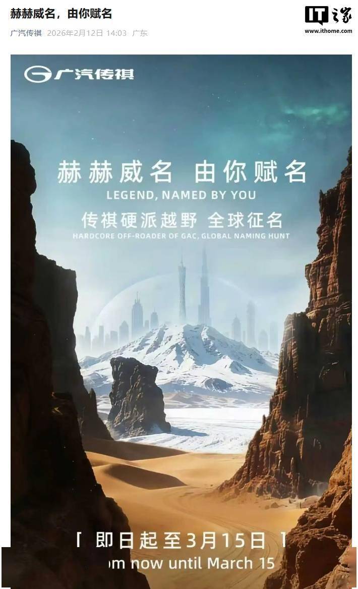 广汽传祺近日通过官方渠道发布了一组全新硬派越野车的预告海报,同时宣布启动全球征名活动,活动周期将持续至3月15日。这一举措标志着品牌在越野细分市场迈出重要一步,引发了行业与消费者的广泛关注。