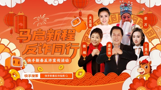 寒假春节,是人们享受愉快假期的好时光,但同时也是各类引流诈骗的高发期。2月10日,在北京市网信办的指导下,快手联合地方公安、明星达人、优质创作者等力量,火热开展主题为“马启新程 反诈同行”的新春反诈宣传活动,通过线上+线下形式丰富多样的活动持续开展反诈宣传,不断提升平台用户反诈防骗意识和能力。