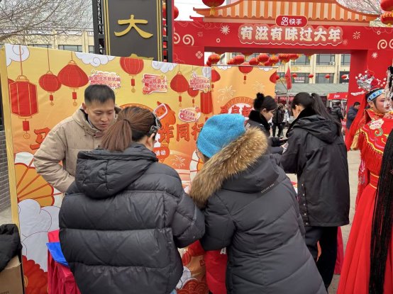 2月10日,北方小年一大早,“有滋有味过大年——解锁沈阳硬核年味”活动在沈阳市于洪区造化大集热闹开启,逛大集、囤冻货、办杀猪菜、贴窗花等东北特色年俗一一呈现。“不管买年货的还是卖年货的,都要提高反诈意识,防止上当受骗。”在快手安全中心和沈阳市公安局于洪分局搭建的反诈宣传展台前,反诈民警和快手工作人员热情地向过往的市民群众宣传反诈知识。快手达人姜闹闹和大鑫也来到反诈展台前互动,呼吁直播间的粉丝网友警惕冒充客服、冒充警察、兼职刷单等高发诈骗,引导关注国家反诈中心快手号,下载国家反诈中心APP。