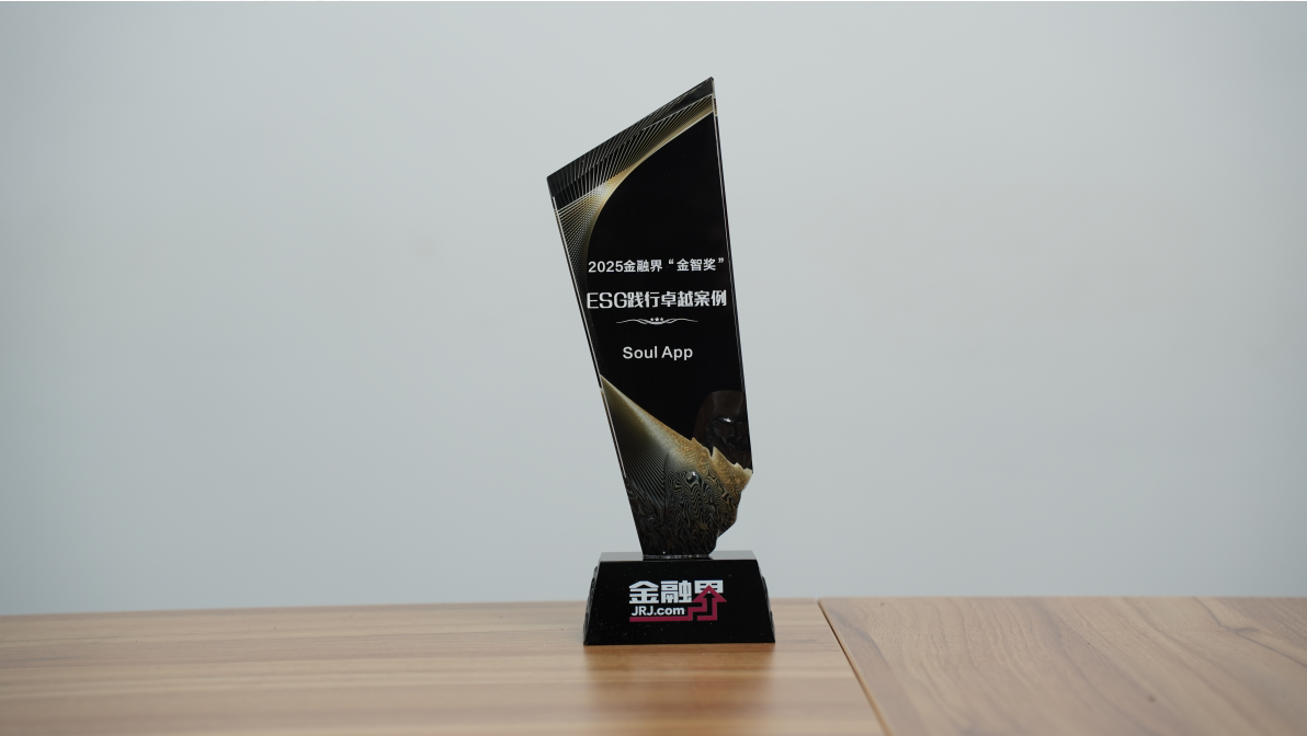 如果说 AI 是向上的牵引力,那么 ESG 就是平台向下扎根的生命线。2025年,Soul 在这一领域赢得了金融界“ESG 践行卓越案例”、《北京商报》“年度 ESG 新锐榜样”以及运营商财经网“2025 年度 ESG 创新先锋企业”等荣誉。