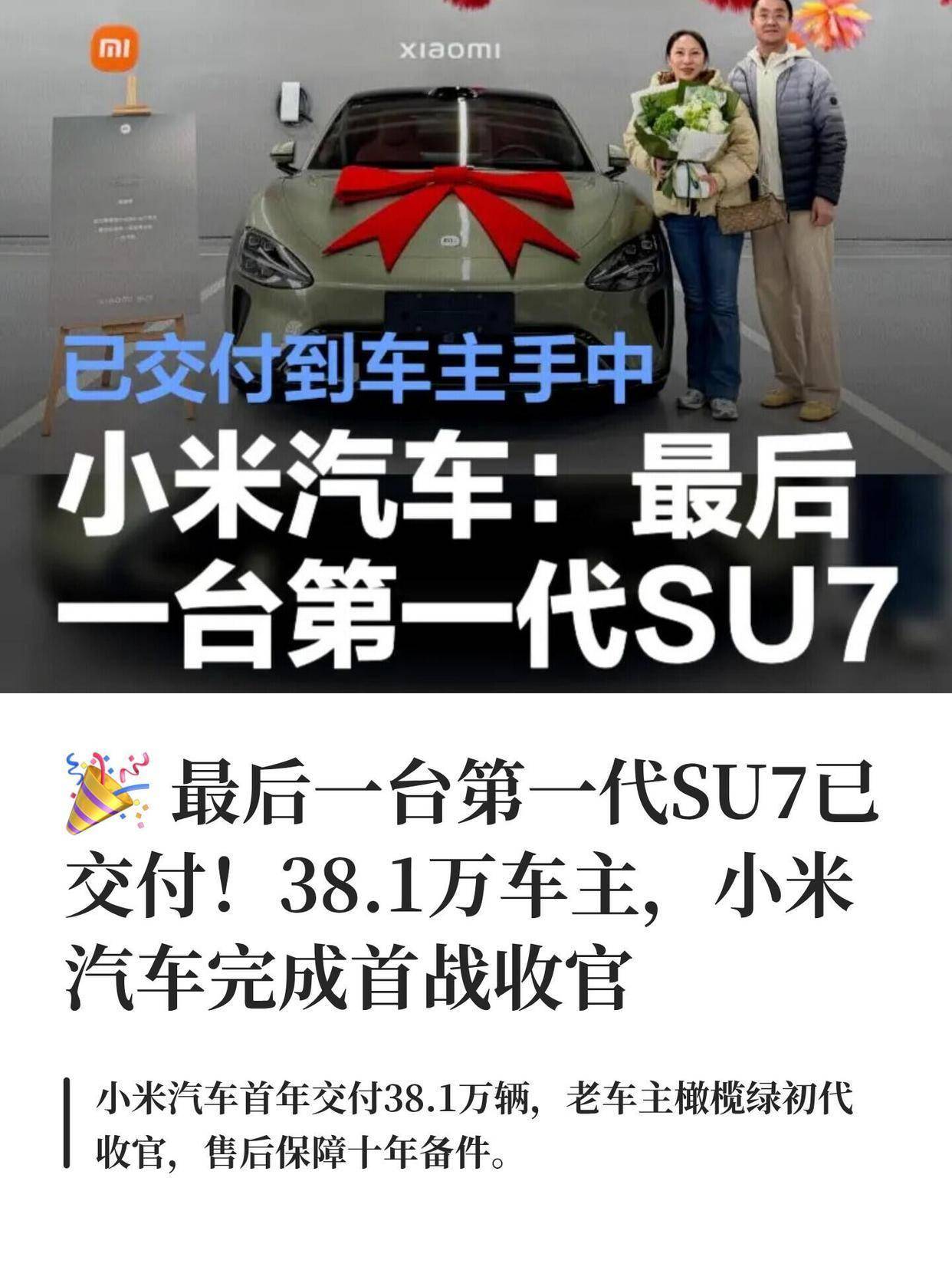 近日,小米汽车宣布其初代SU7车型正式收官,这一消息在国产电车市场引发广泛关注。作为小米进军汽车领域的首款力作,SU7自发布以来便凭借出色的性能和智能化配置,赢得了消费者的青睐。
