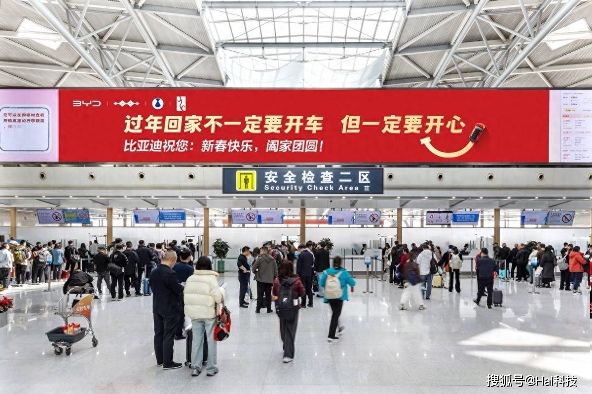 机场是春运情绪最为浓烈的场景之一,离乡的眷恋与归家的热望在此交织。比亚迪选择在这个时刻、这个地点传递祝福,正是为了实现品牌与用户心理的深度共鸣。广告中“不一定要开车”的表述,既体现了对多元出行方式的尊重,也主动弱化了商业推销的痕迹,将品牌角色从“工具提供者”升华为“情感同行者”。这种“去功利化”的沟通方式,为充满压力的集体旅程注入了一丝暖意与松弛。