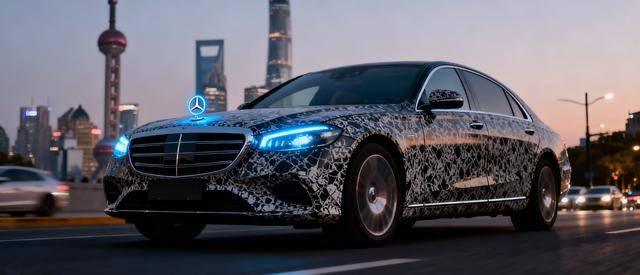 在上海陆家嘴的晚高峰车流中,一辆被伪装布包裹的黑色轿车悄然驶过。尽管车身被严密覆盖,但修长的轮廓与独特的车身比例,仍让人一眼便认出这是奔驰S级。更引人注目的是,伪装布下隐约透出的蓝光——正是新一代S级标志性的发光三叉星徽立标。这代车型海外发布仅一个月便现身国内测试,如此迅速的引进节奏,似乎暗示着奔驰正面临来自国产豪华车型的强烈挑战。