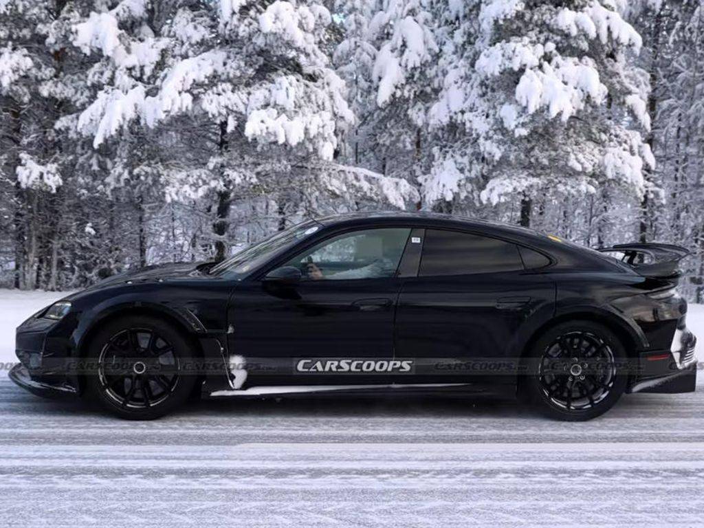 从曝光的谍照来看,这台强化版保时捷Taycan在外观设计上进行了大刀阔斧的改动。其整体采用了全新的RS风格运动外观套件,视觉上更接近一台随时准备征战赛道的量产车。前脸部分,前扰流板造型经过重新设计,摒弃了赛车风格的支架固定方式,线条更加流畅且富有攻击性。为适配更宽的轮距,工程师专门设计了宽大的轮拱护板,并在前轮后方新增了散热开口,这一设计不仅提升了车辆的空气动力学性能,还能有效降低高速行驶时刹车系统的温度,保障制动稳定性。