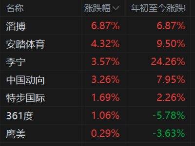 港股异动丨体育用品股拉升 安踏涨4.3% 李宁涨3.6% 冬奥会顺利举行叠加春节旺季