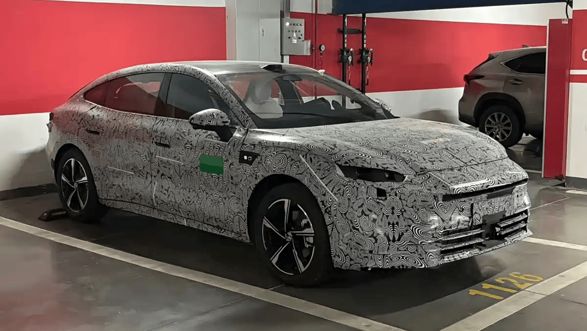 车身侧面线条流畅,采用半隐藏式门把手设计,配合修长的车身比例和较长的轴距,营造出优雅动感的姿态。尾部造型采用溜背式设计,预计将配备一体式开启的后备厢。虽然量产版尾灯尚未安装,但贯穿式灯带轮廓已清晰可见,进一步强化了车辆的运动气质。
