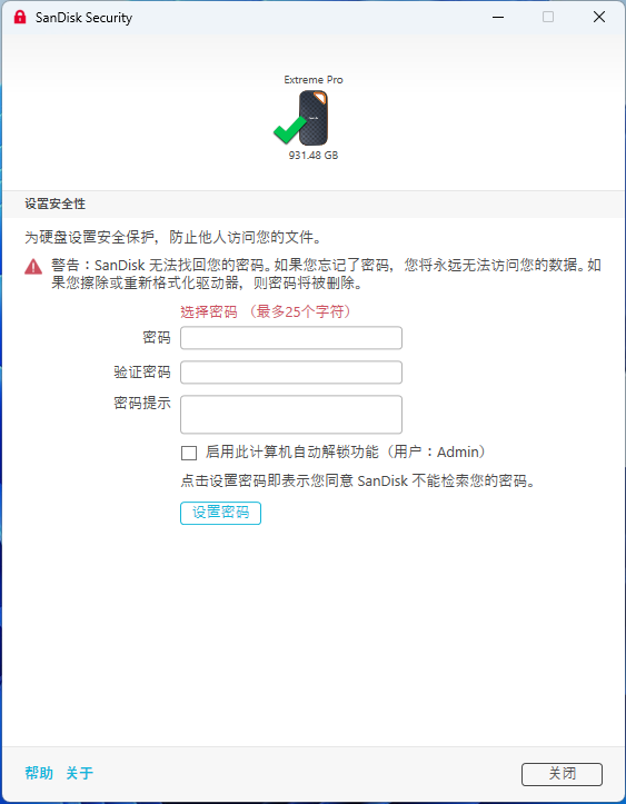 闪迪配套软件堪称 “古董级”,SanDisk Security 界面设计停留在十年前,无现代化交互,本地化适配为零,甚至存在语言乱码问题,仅能实现基础密码保护,无健康监控、固件升级、移动备份等功能。