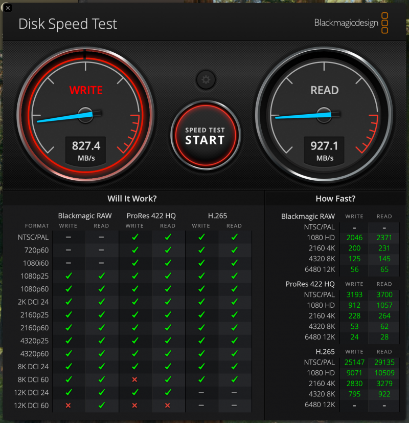 针对视频创作者常用的Mac平台,我们使用Disk Speed Test进行测试,结果显示6款产品均能完美适配MacBook Air M3,无识别和传输问题。(说明:由于Mac接口协议限制,测试产品无法发挥全速性能,因此测试成绩与Windows平台存在差异。)