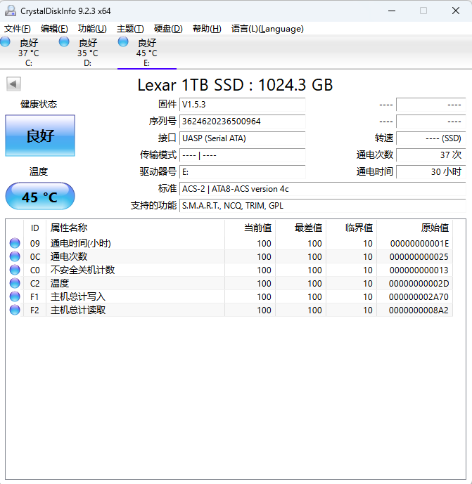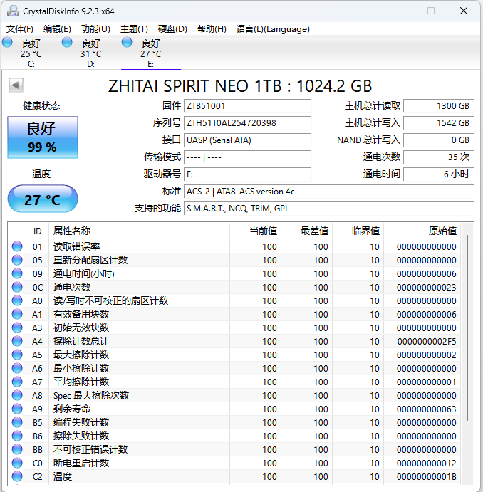 电脑端的天枢大师功能全面,支持设备健康监控、固件升级、设备优化、安全擦除、文件备份,一站式完成硬盘管理。