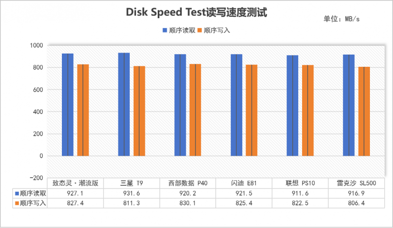 西部数据P40与闪迪E81持续写入性能稍显逊色,联想PS10和雷克沙SL500则处于第三档水平,虽略逊于前两者但足以满足日常使用。