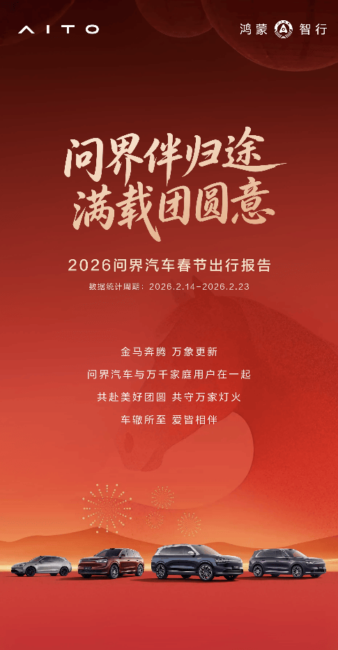 春节期间,中国豪华汽车品牌问界以一系列亮眼数据,展现了其在智慧出行领域的领先地位。根据最新发布的《2026问界汽车春节出行报告》,问界车主在春节假期累计行驶里程达8.2亿公里,相当于绕地球20,460圈。其中,增程式车型行驶里程达3.8亿公里,较平日增长17.6%。与此同时,用户累计充电量达9,595万kWh,实现碳减排12万吨,相当于种植1,055万棵树,为绿色出行树立了新标杆。