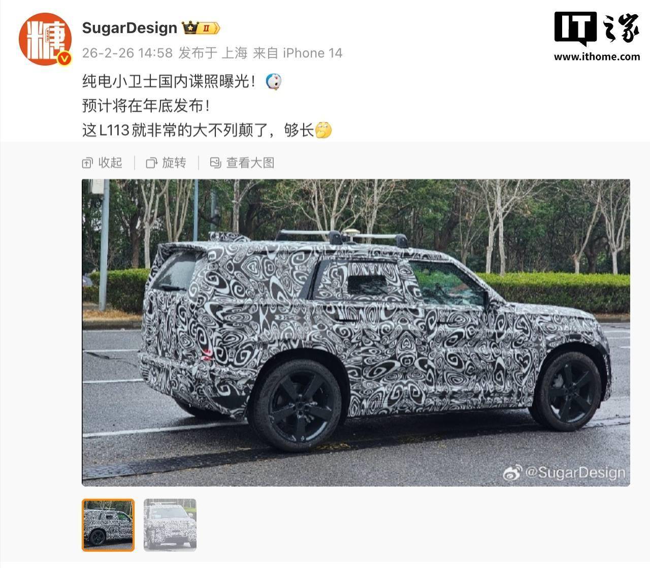 近日,一组路虎纯电“小卫士”的国内实车谍照在网络上引发关注。博主@SugarDesign率先曝光了这组照片,并透露新车有望于今年年底正式发布。从谍照中可以看到,这款新车延续了路虎卫士家族标志性的方正硬朗设计语言,同时融入了更多现代化元素。
