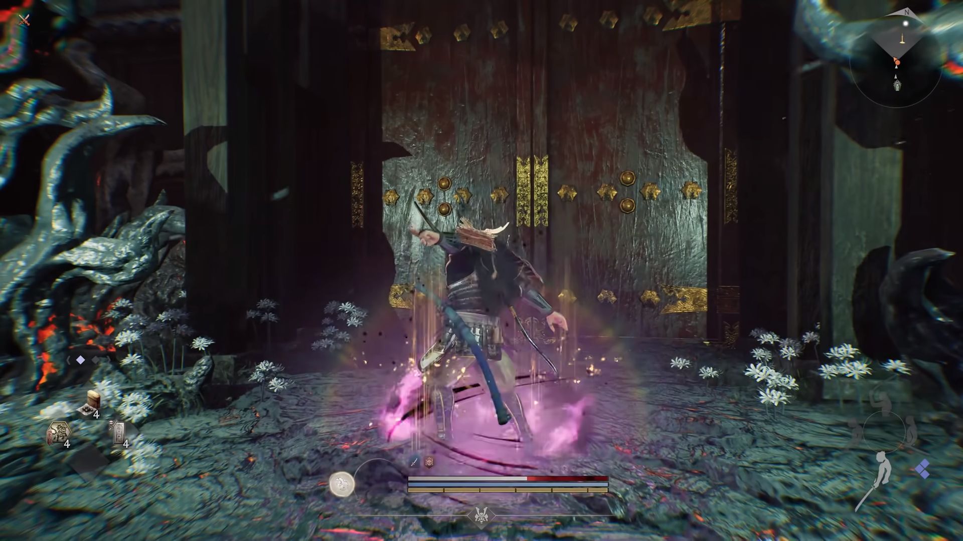 《仁王3》还首次采用了开放区域设计,玩家将告别线性关卡,自由探索江户、战国、平安、幕末等多个时代的日本风貌。新增的“坩埚”挑战模式则提供了高难度进阶副本,玩家需击败被黑暗扭曲的历代英雄,净化腐蚀区域,并面对随时间变强的敌人。游戏还支持完整的在线多人功能,包括协力游玩、召唤帮手和“常世同行”等模式,堪称系列历史中玩法最丰富的一代。