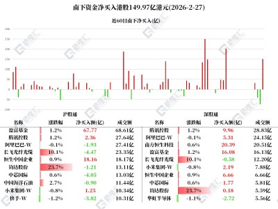图解丨南下资金净买入港股150亿港元,加仓腾讯、小米