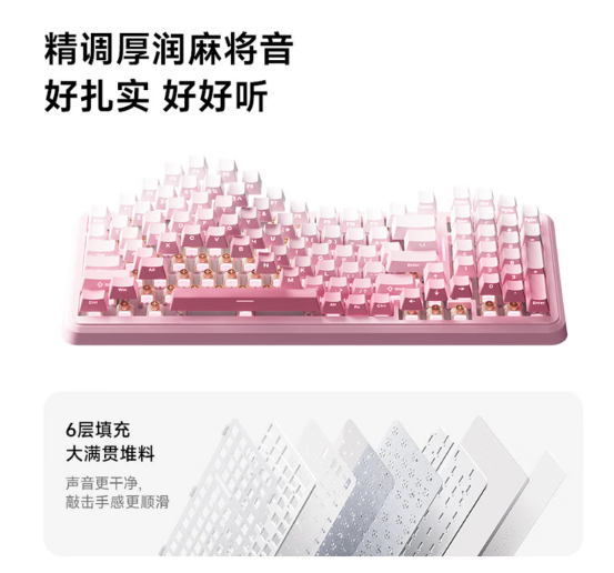在手感体验上,迈从K99 V3同样下足了功夫。全系采用琉光冰淇淋轴,搭配Gasket结构与六层填充,敲击手感顺滑软弹,HIFI级打字音清爽不扰人,长时间办公也不易疲劳,无论是办公室还是居家场景都能游刃有余。
