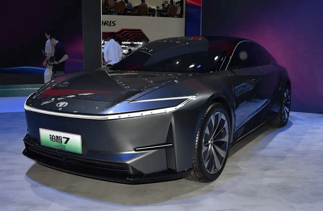 设计语言上,铂智7采用独特的“轿跑大GT”风格。溜背式车身线条流畅自然,车头封闭式格栅搭配C型贯穿式灯组,营造出极具辨识度的“锤头鲨”仿生学视觉效果。车顶醒目的激光雷达装置,则暗示了其在智能驾驶领域的深厚积淀。这种设计既保留了丰田的经典元素,又融入了新能源时代的科技感。