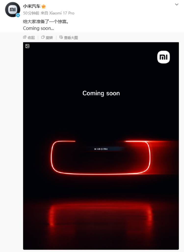 小米汽车近日动作频频,引发市场高度关注。先是小米汽车官方微博发布神秘预告:“给大家准备了一个惊喜。Coming soon…”,随后雷军转发并简短留言“明天见”,这一互动迅速点燃了网友的好奇心。