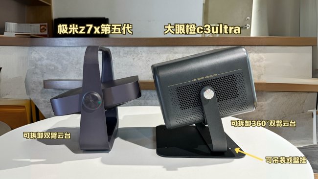 大眼橙C3 Ultra配备的全金属双臂云台支架绝对是这款投影仪的一大亮点,它不仅设计上高端大气,更在实用性和便捷性上做到了极致。这个支架采用了双臂结构,稳定性非常出色,即使不小心碰到也不易晃动,让你可以安心享受观影时光。