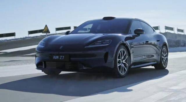 从外观谍照来看,Z7采用了极具运动感的设计语言。前脸部分借鉴了青蛙造型的灵感,搭配两侧细长的月牙形大灯组,营造出犀利的视觉效果。下方两条凸起的横向装饰条与中央内凹设计相结合,使车头层次感更加丰富。车身侧面采用低矮姿态设计,配合大溜背式尾部造型与半隐藏式门把手,进一步强化了运动属性。双五辐低风阻轮毂的加入,则让整车看起来更具战斗气息。尾部贯穿式灯组集成主动式尾翼功能,在保持设计创新性的同时兼顾了空气动力学性能。