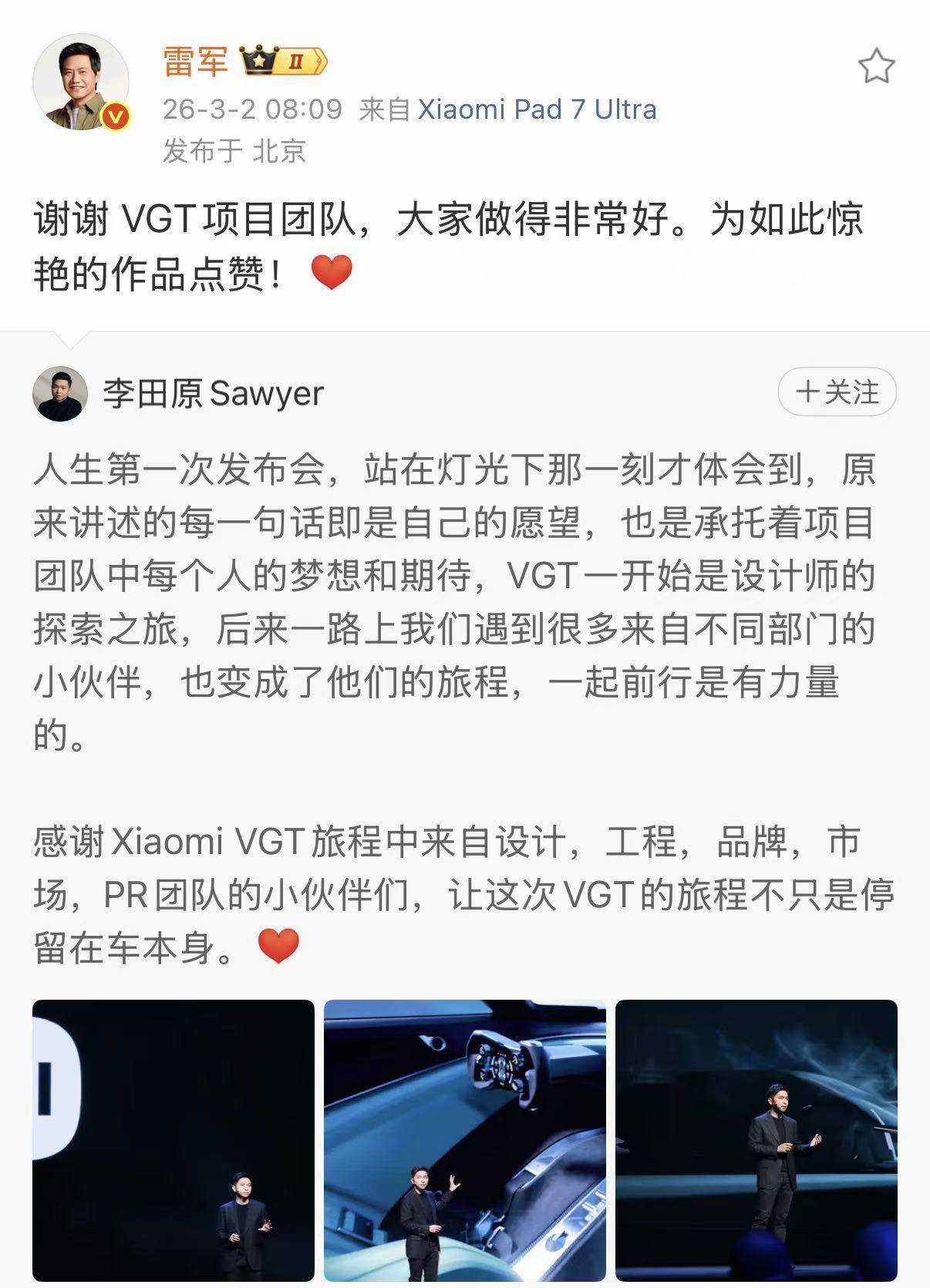 雷军在社交平台发文盛赞VGT项目团队:"大家做得非常好。为如此惊艳的作品点赞!"这款概念车的诞生,不仅展现了小米在汽车设计领域的创新实力,更预示着智能出行与未来科技的深度融合。从空气动力学优化到人机交互界面,每一个细节都凝聚着工程师对极致性能的追求。