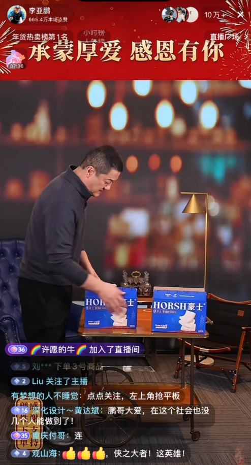 据了解,李亚鹏在春节前特别加开了一场嫣然医院捐款企业的专属回馈直播,这也是其节前的最后一场直播。直播中李亚鹏表示:"所有帮助过嫣然的朋友,就都是我一辈子的朋友,只要帮助过我一次的,就是我终身的朋友”,还专门上架了豪士面包、莲花味精、卫龙等为嫣然天使儿童医院伸出援手的捐赠品牌产品,用这样的方式与爱心企业双向奔赴,让公益的温暖在互动中持续传递。